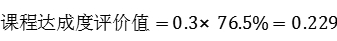 举例说明:上例中,该课程的课程目标1支撑毕业要求指标点1-3,且达成目标值为0.3,则该课程对应的毕业要求指标点1-3的课程达成度评价值为: