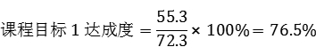 举例说明:某课程有3个课程目标,其中课程目标1在期末考核中对应的总分为72.3分,考核结果的平均得分为55.3分,则该课程的课程目标1的达成度为: