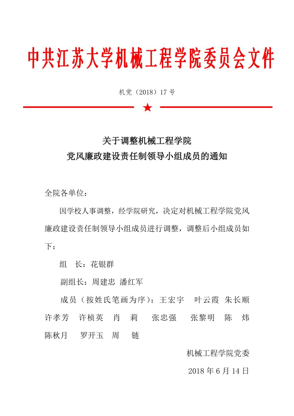 关于调整hg8088皇冠登录入口党风廉政建设责任制领导小组成员的通知