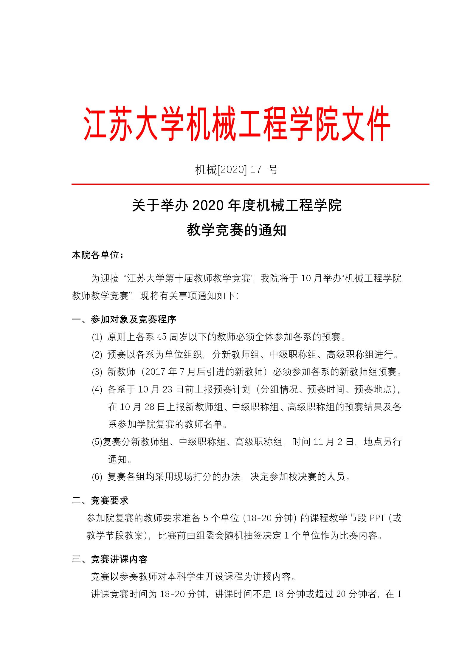 关于举办2020年度hg8088皇冠登录入口教学竞赛的通知(机械[2020] 17 号).pdf