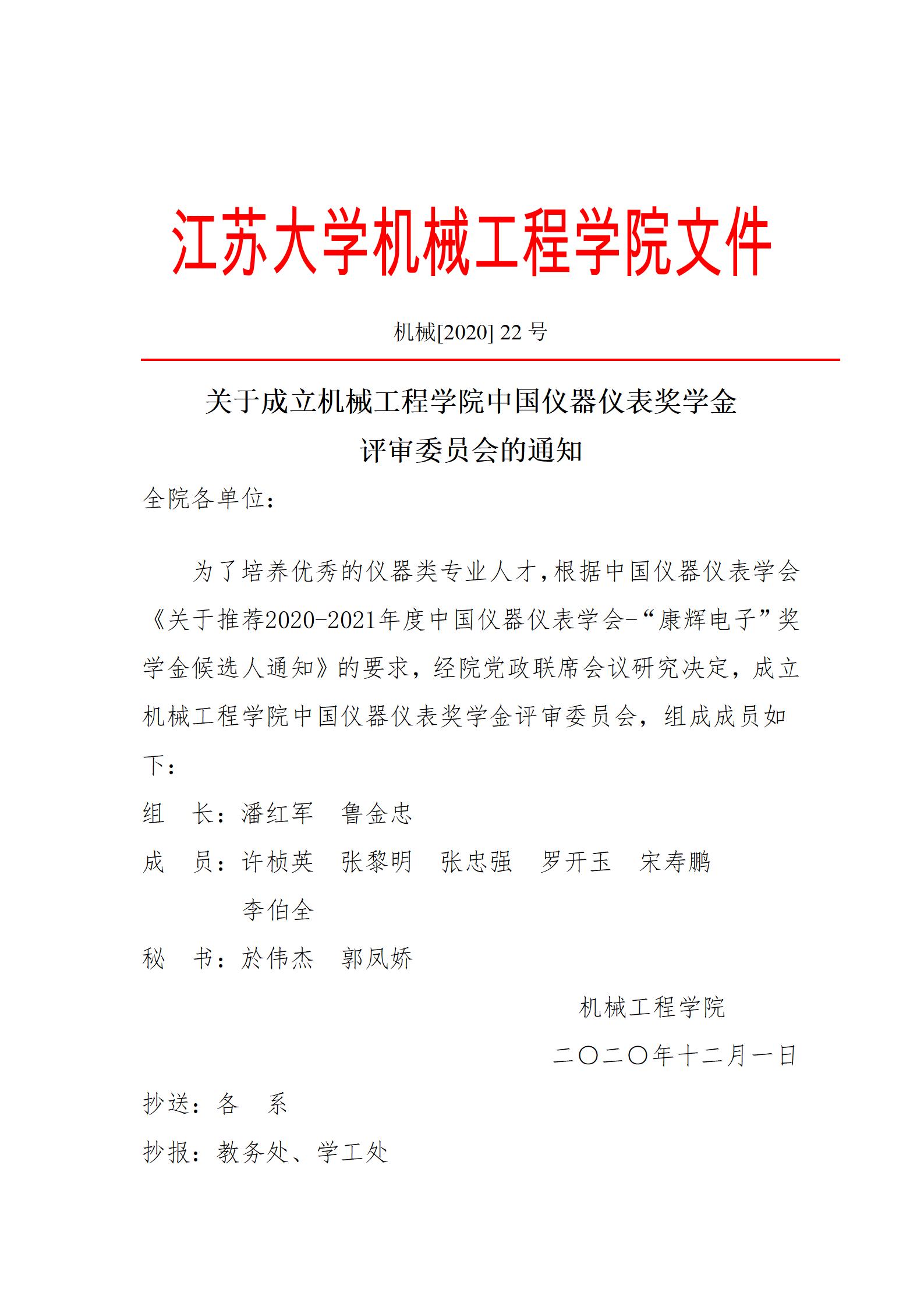 关于成立hg8088皇冠登录入口中国仪器仪表奖学金评审委员会的通知