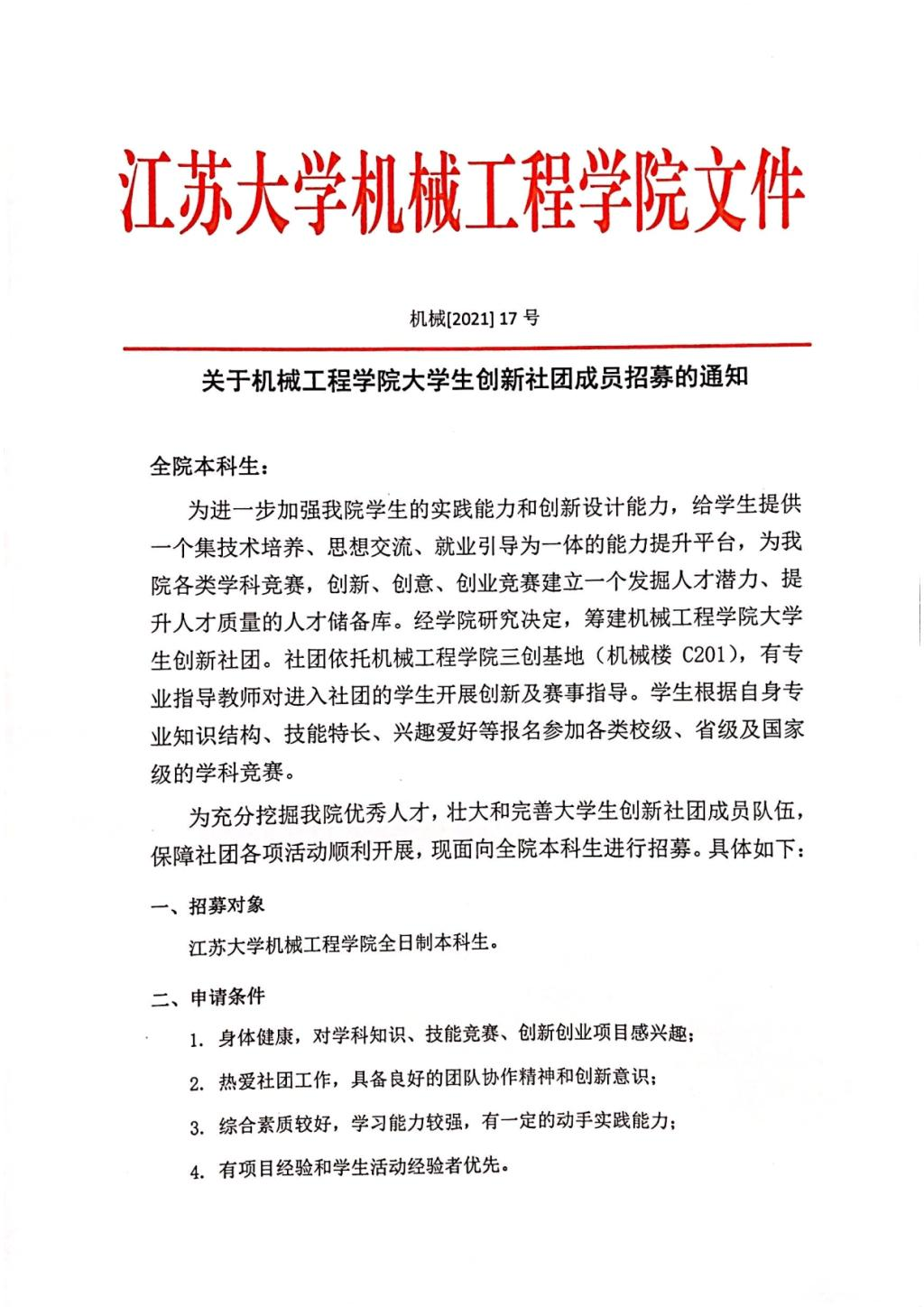 关于hg8088皇冠登录入口大学生创新社团成员招募的通知